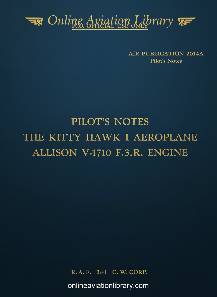- Curtiss P-40 KityHawk I with Allison V-1710 F.3 R. Engine - Pilot's notes - AR -2014A - 1941