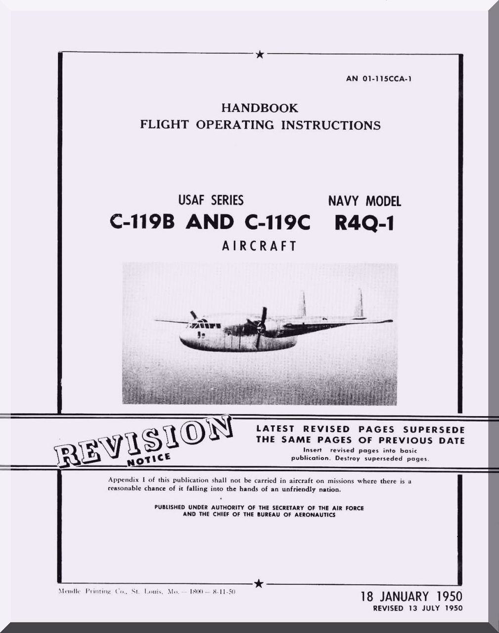 - Fairchild C-119 B, C R4Q-1 , Handbook Flight Operating Instructions Manual TO 01-115CCA-1B-1 , 1950