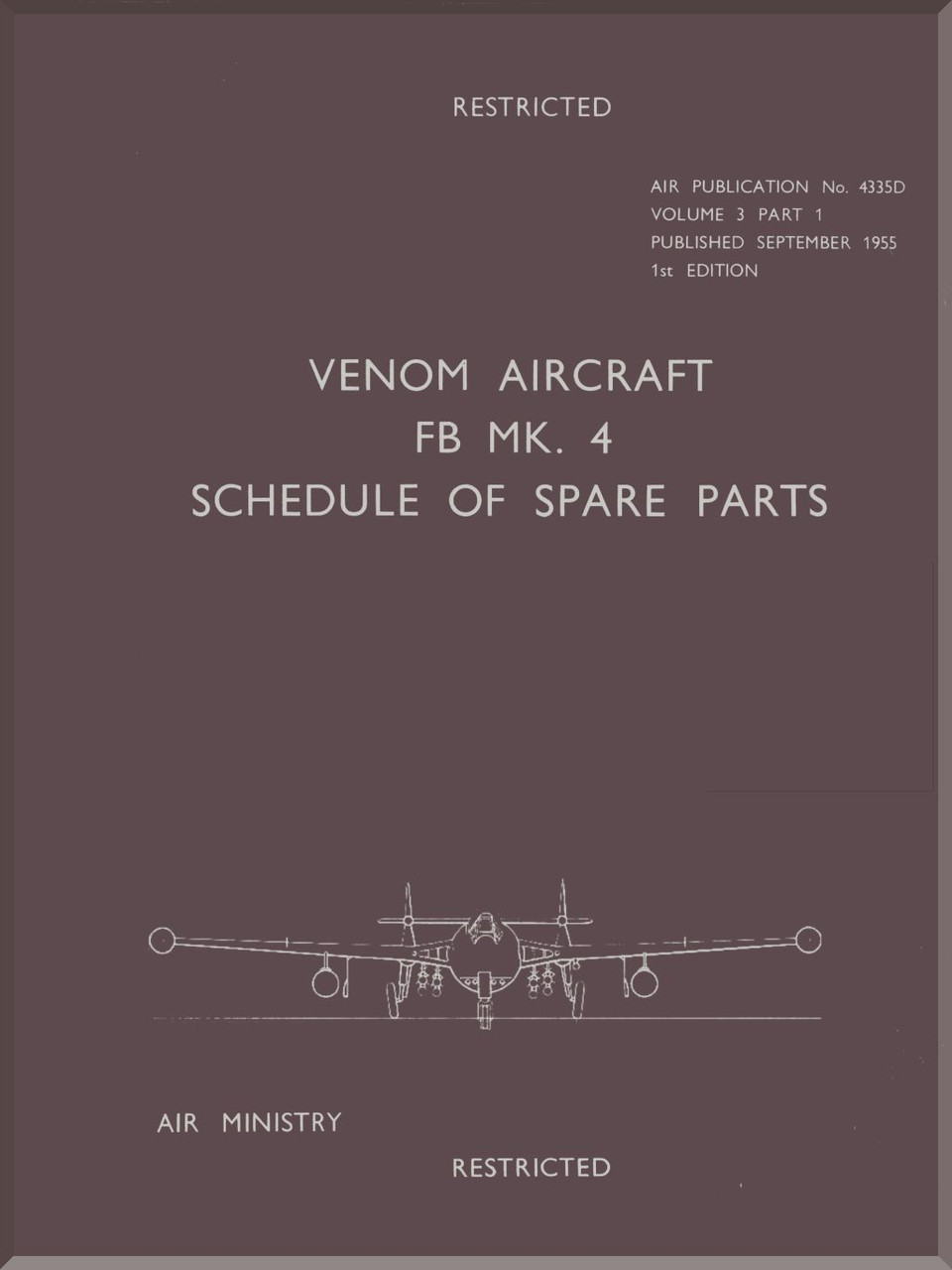 - De Havilland Venom FB Mk. 4 Aircraft Schedule of Spare Parts Manual - 1955