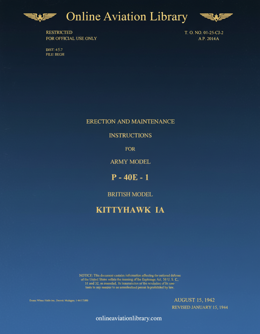 - Curtiss P-40 E-1 British Model Kitty Hawk 1A - Erection and Maintenance Instructions Manual -T.O 01-25CJ-2 - 1942