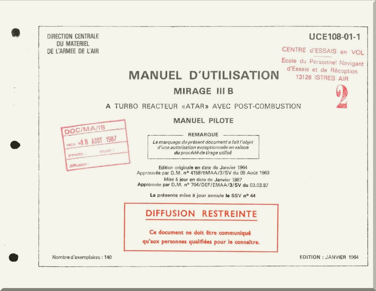Dassault Mirage III B Aircraft Operating Manual - Manuel Pilot - Text ( French Language )