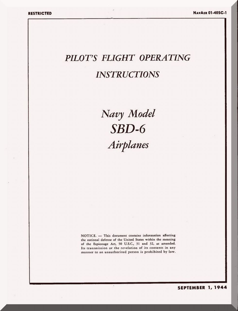 - Douglas SBD-6 Aircraft Pilot's Flight Handbook Manual , 1944