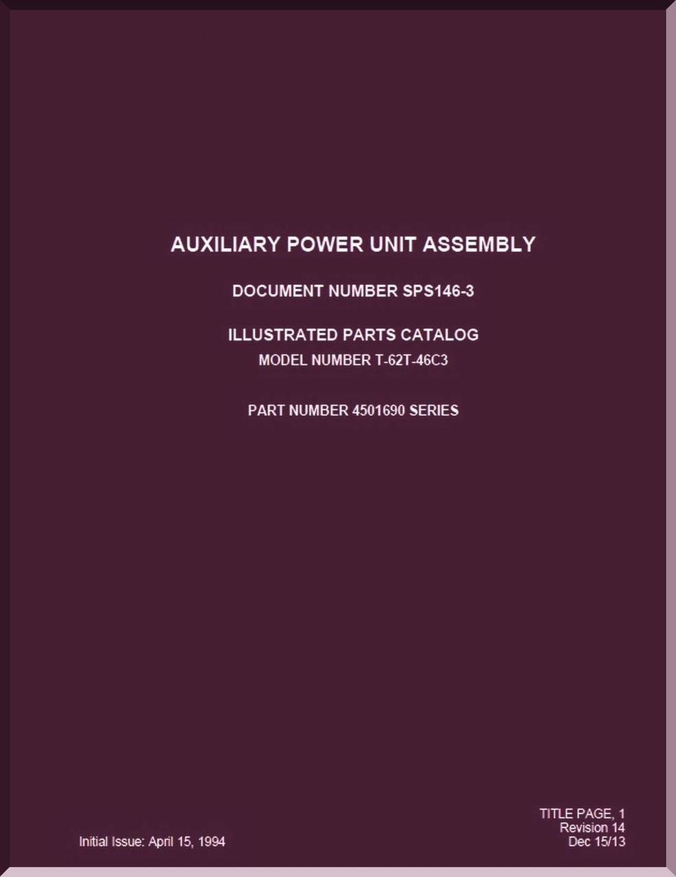 - Hamilton Sundstrand T-62T-46C3-1 Aircraft Engine Auxiliary Power Unit Assembly Illustrated Parts Catalog Manual - 1994