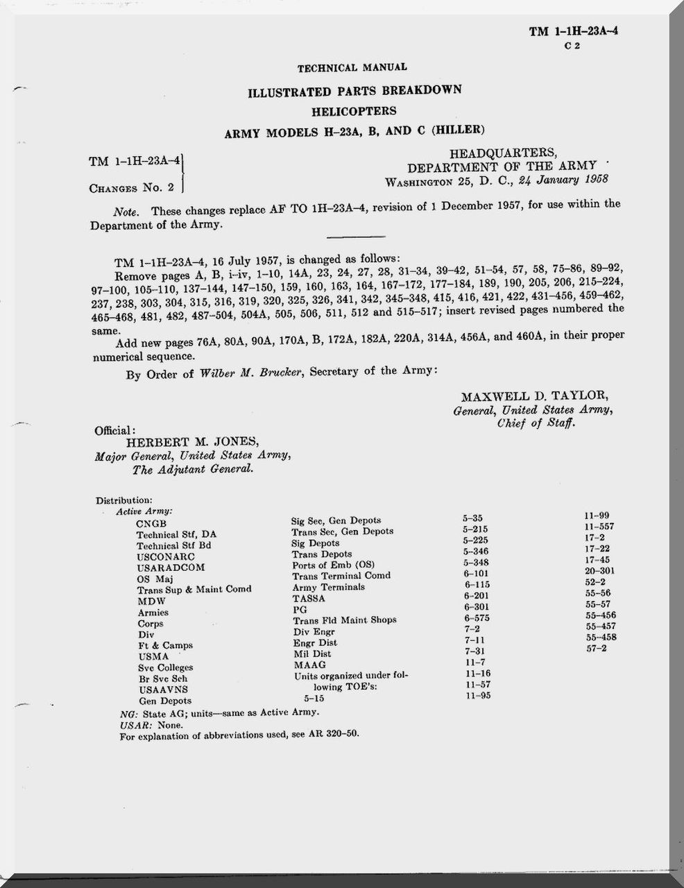 - Hiller H-23 A, B, C Helicopter Illustrated Parts Breakdown Manual - TM 1-1H-23A-4 -