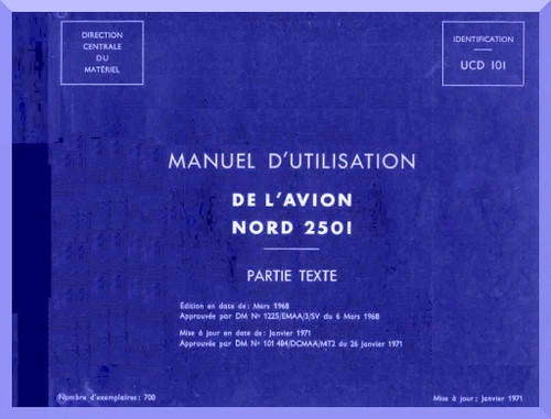 Nord 2501 Aircraft Manuel d'utilisation Manual (French language ) - Partie Text -1971