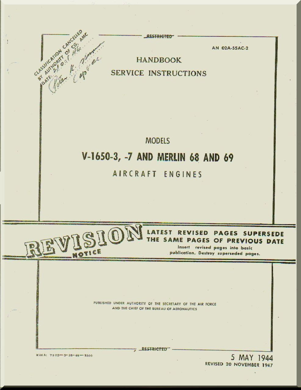 - Rolls Royce Packard Merlin 1650 -3 - 7 Aircraft Engine Service Manual - 02-55AC-2 -1947